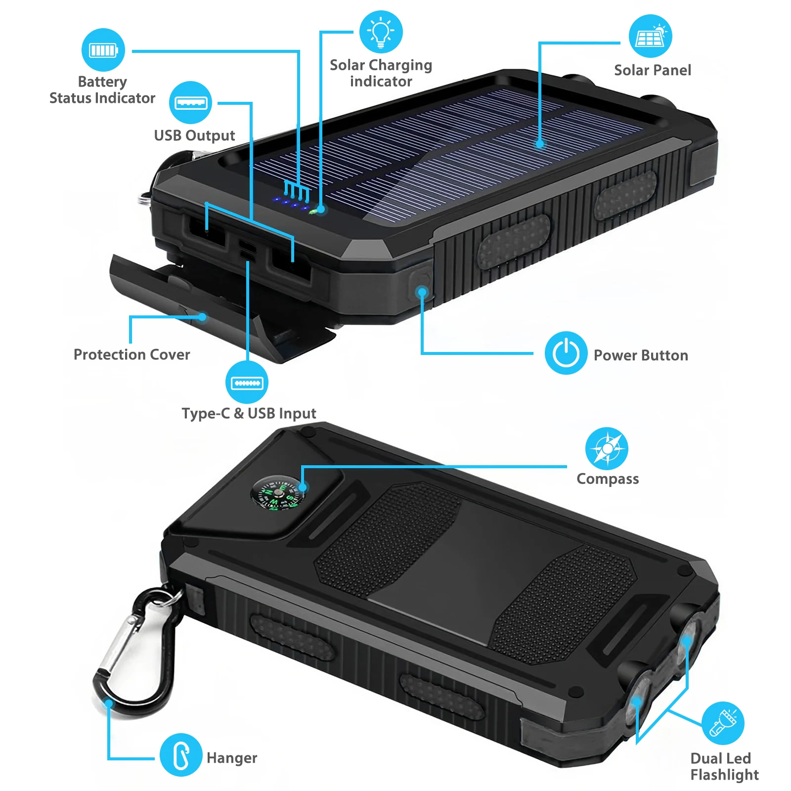 - Massive 30000mAh capacity keeps your devices charged for days without needing constant recharging